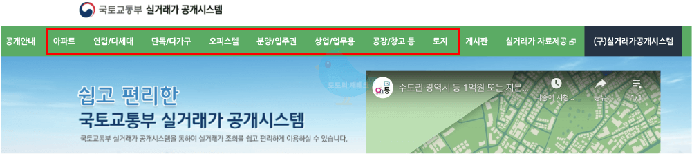 1. 검색창에 "국토교통부 실거래가 공개시스템"을 검색하여 사이트에 들어갑니다.