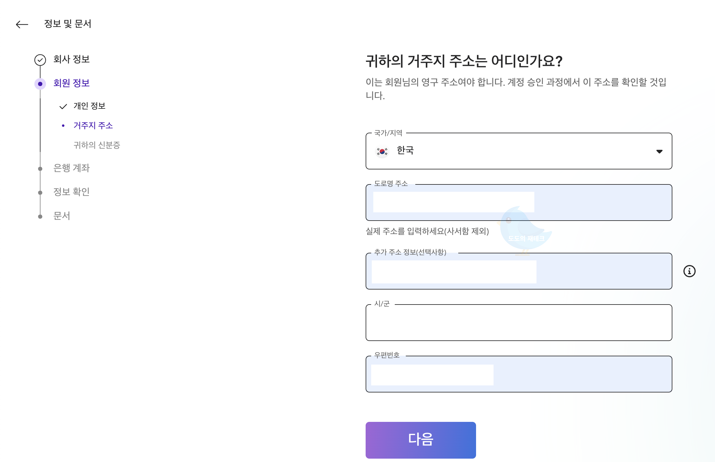 검토가 완료되면, 계정 승인에 필요한 추가 서류를 요구하는 창이 나타날 것이다.